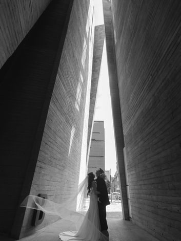Chic and romantic portrait photography style, providing classic minimalism along with sweeping rooftop vistas that are perfect for sunset.